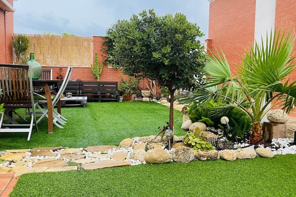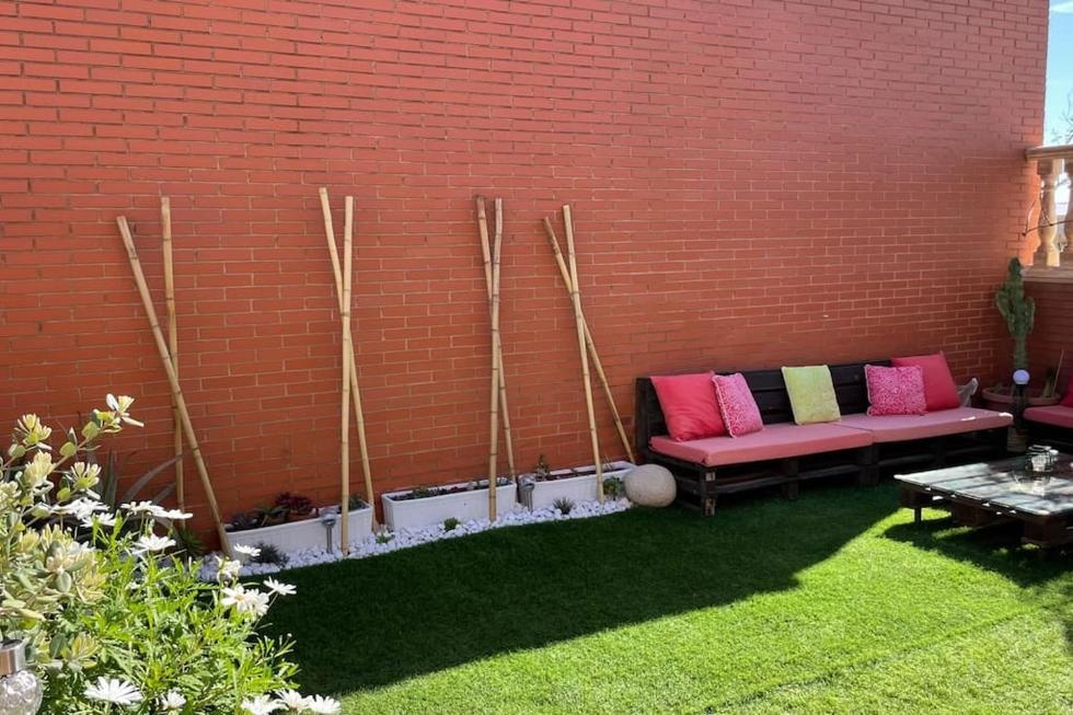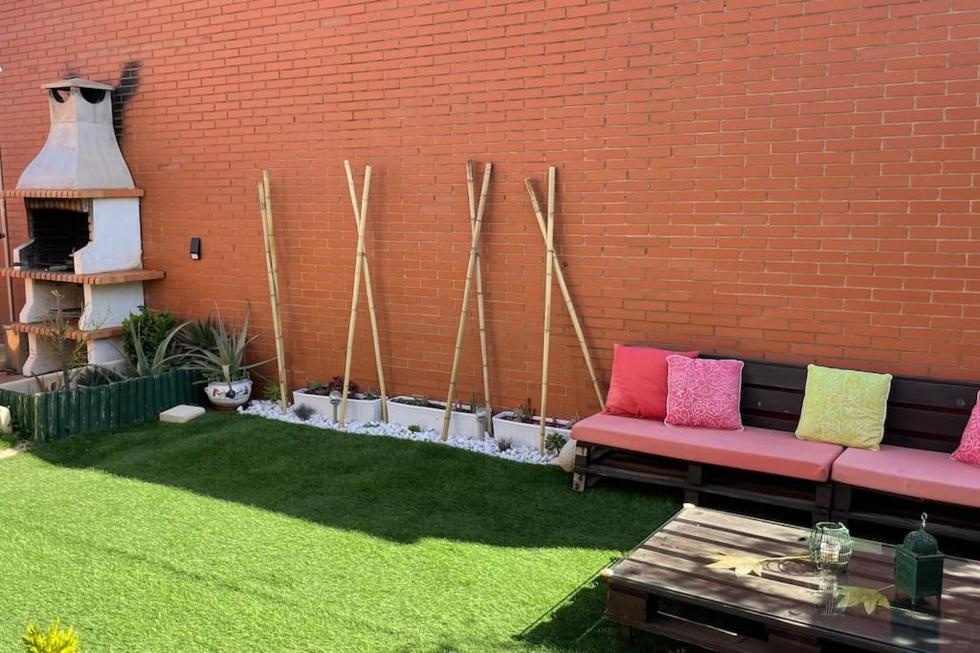 - Zona exterior con terraza, jardín y barbacoa